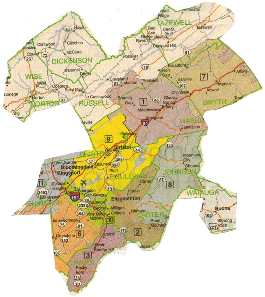 Our service area includes all of the greater Tri-Cities area (Bristol, Kingsport, and Johnson City), along with additional surrounding 13-county area, encompassing Northeast Tennessee, Southwest Virginia, and Northwestern North Carolina.